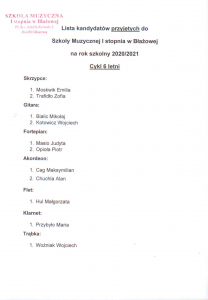 Lista kandydatów przyjętych do Szkoły Muzycznej I stopnia w Błażowej na rok szkolny 2020/2021 utworzone przez Karol Nabożny | cze 26, 2020 | 0 komentarzy