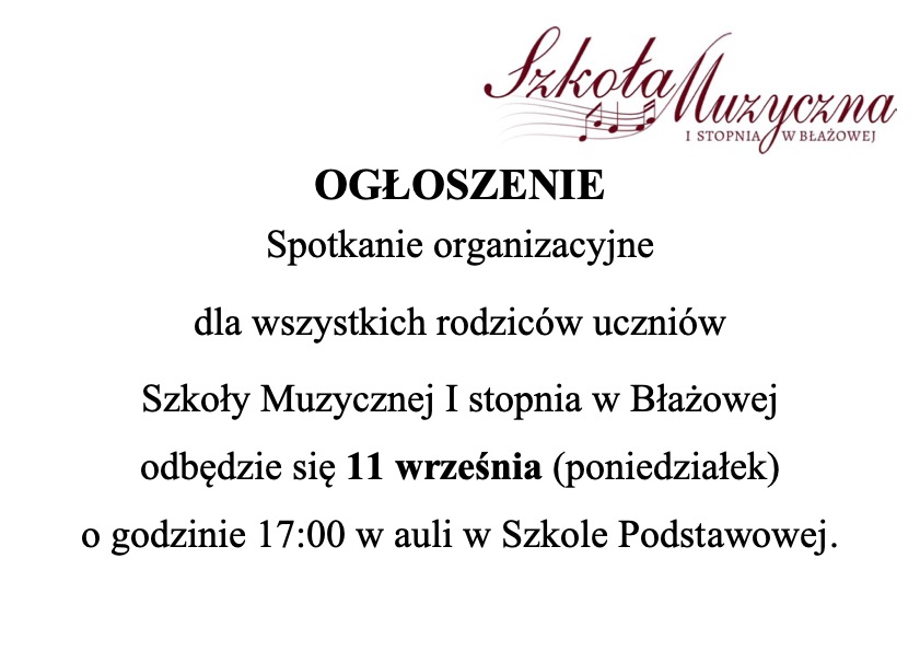 Spotkanie organizacyjne dla rodziców uczniów Szkoły Muzycznej I stopnia w Błażowej!