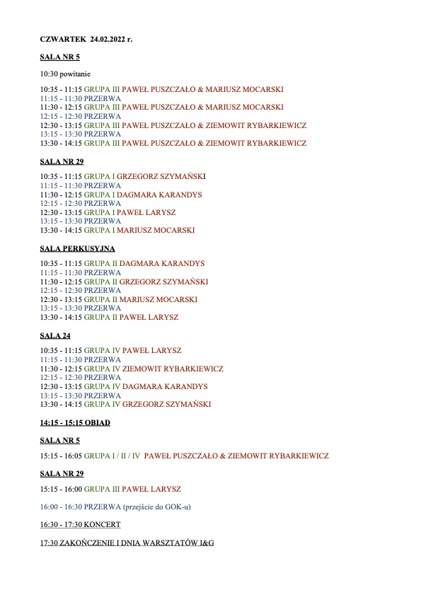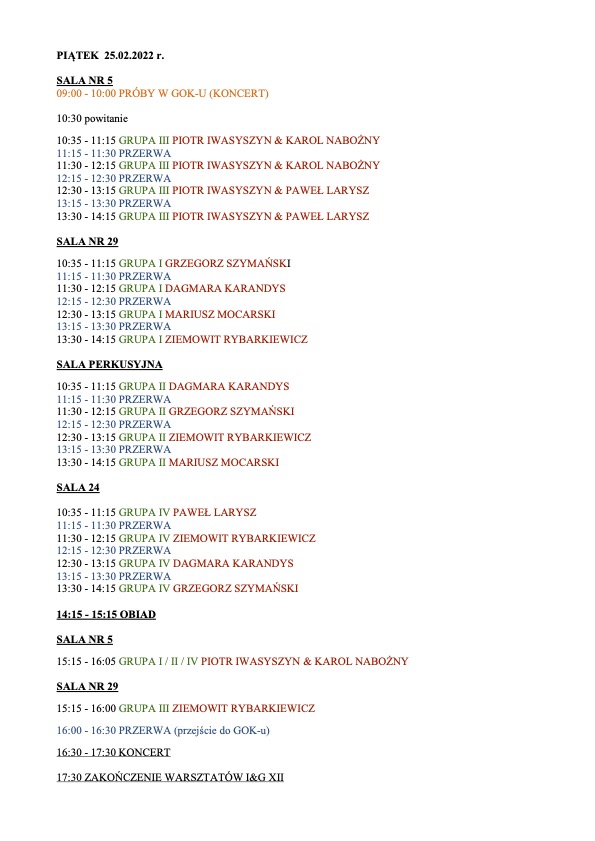 Warsztaty perkusyjne I&G XII – Podział na grupy i harmonogram!!! utworzone przez Karol Nabożny | lut 21, 2022 | 0 komentarzy