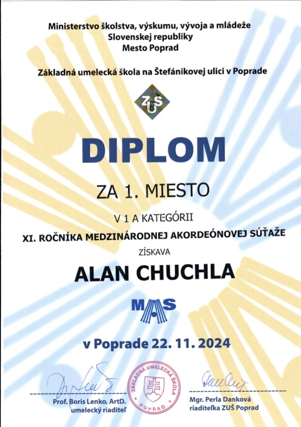 Alan Chuchla – I miejsce w konkursie akordeonowym: